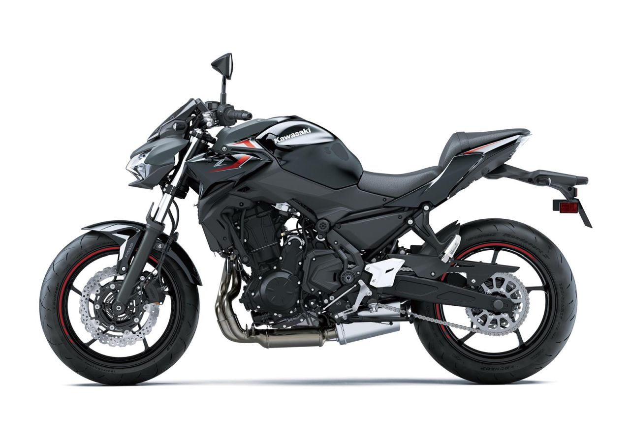 La Z650 también incorpora el sistema de control de tracción KTRC con tres modos, que permite al piloto adaptar la respuesta de la moto según las condiciones de conducción . Con un peso en orden de marcha de 188 kg y una altura de asiento de 790 mm, es una moto manejable y accesible para una amplia variedad de pilotos.